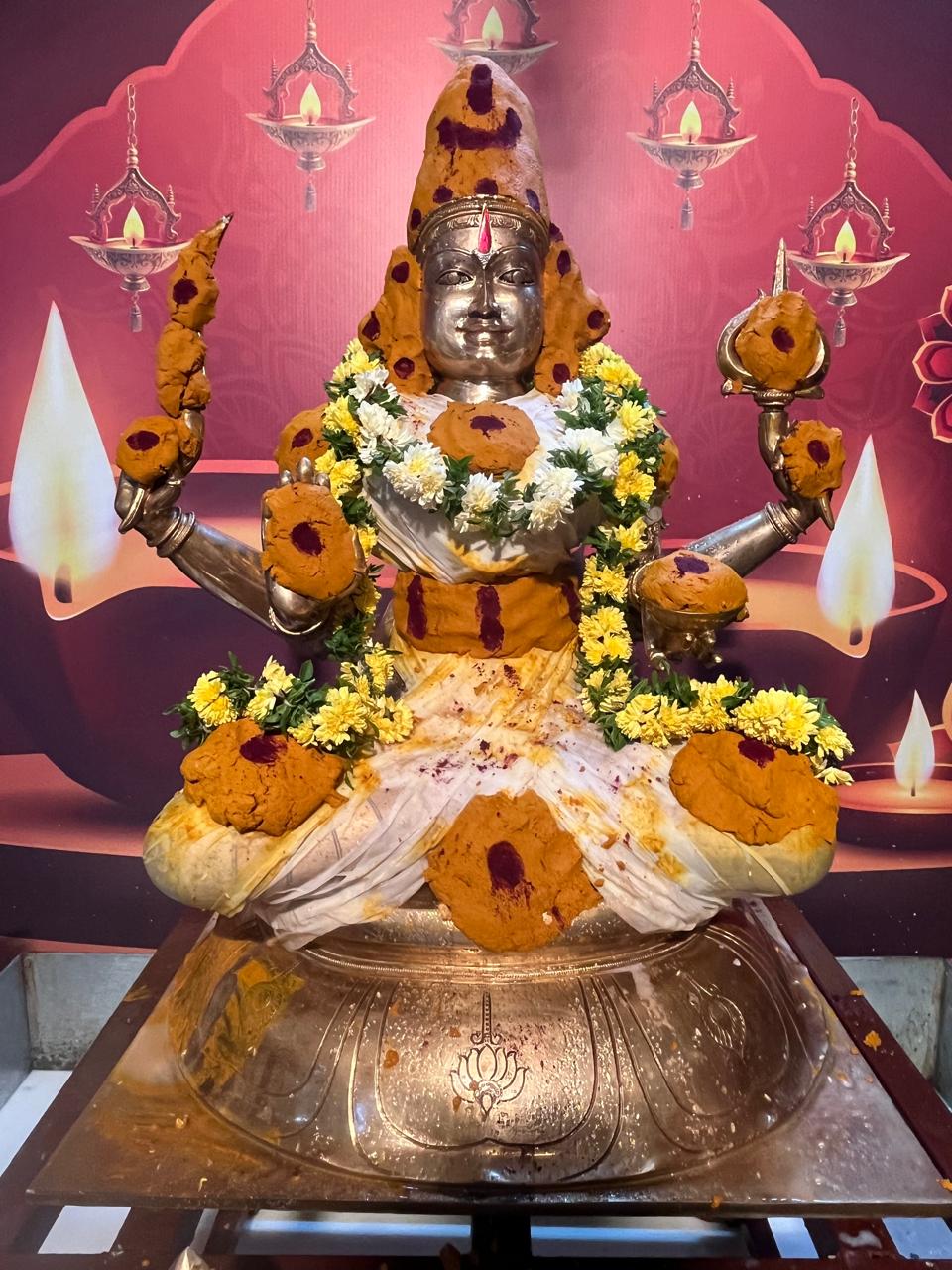 Her worship is especially revered on Fridays, where devotees observe a sacred vrat (fast) praying for household well-being and freedom from obstacles.